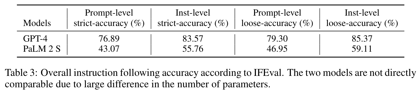 对于 LLM 的 Instruction Following 能力的评估没有标准化:人工评估成本高、速度慢,而且无法客观地重复,而基于 model judge 的自动评估则可能存在偏差或受到 judge model 能力的限制。作者为此引入了指令跟踪评估(Instruction-Following Eval, IFEval)。IFEval 是一种简单易行的评估基准,它侧重于一组“可验证的指令”,例如“write in more than 400 words”和“metion the keyword of AI at least 3 times”。作者确定了25种可验证的指令,并构建了约500个 prompt,每一个 prompt 包含一个或多个可验证指令。